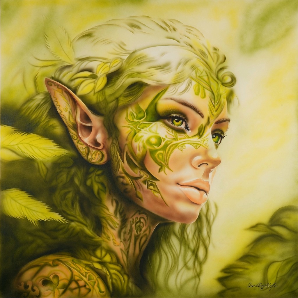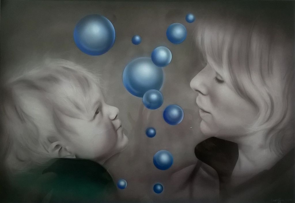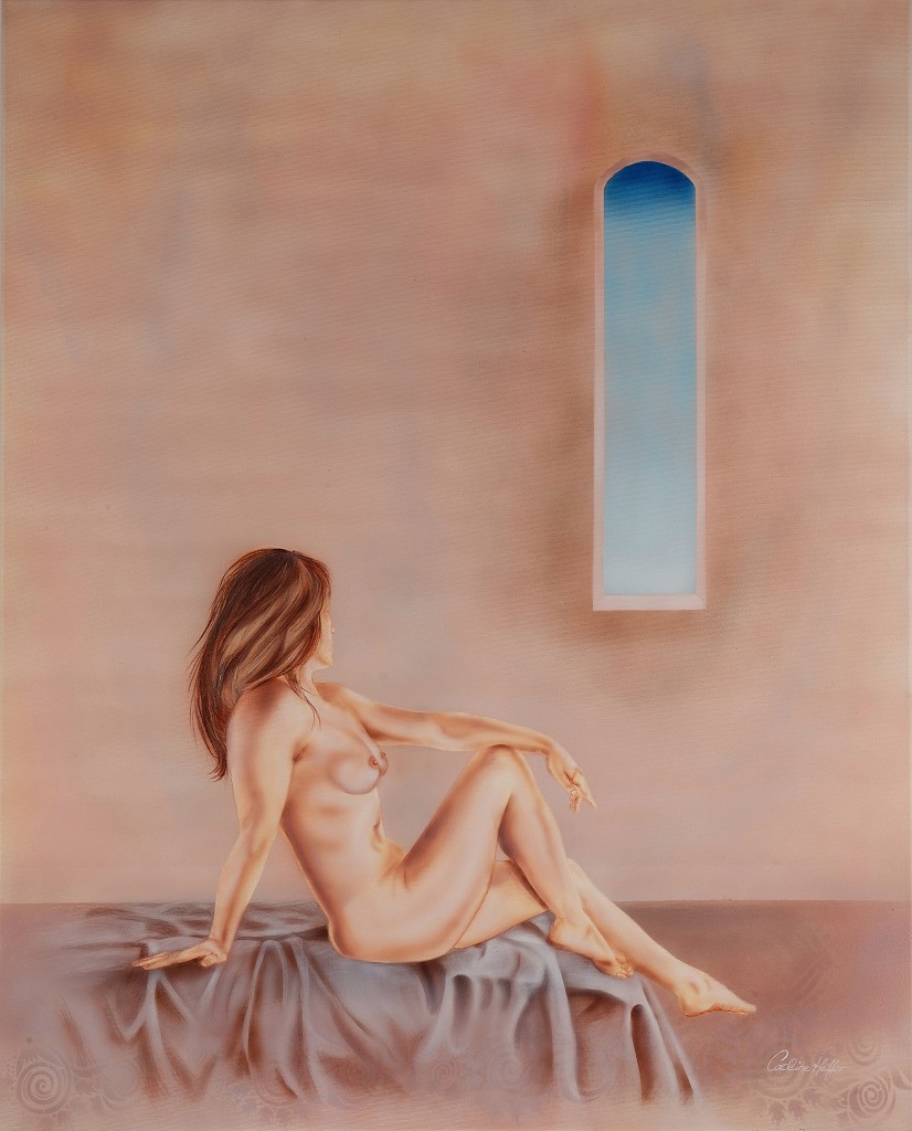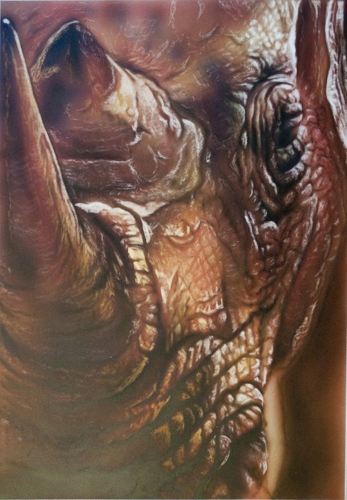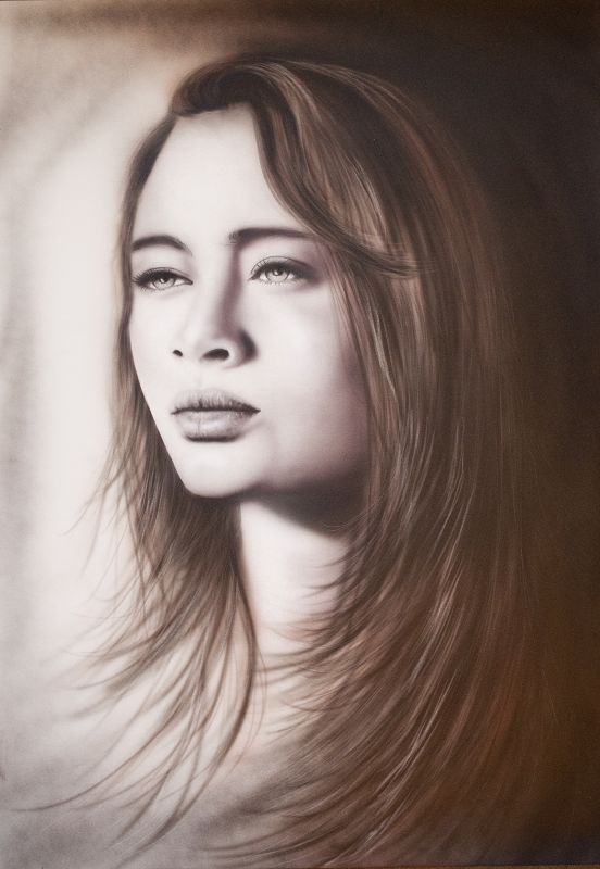 Die Technik des Airbrush ermöglicht einen ganz speziellen Bildstil zu erzielen. In Kombination mit verschiedenen Radier- und Kratztechniken habe ich meinen ganz eigenen Stil gefunden.