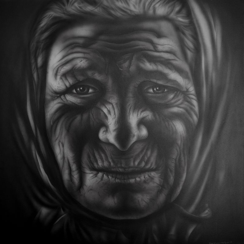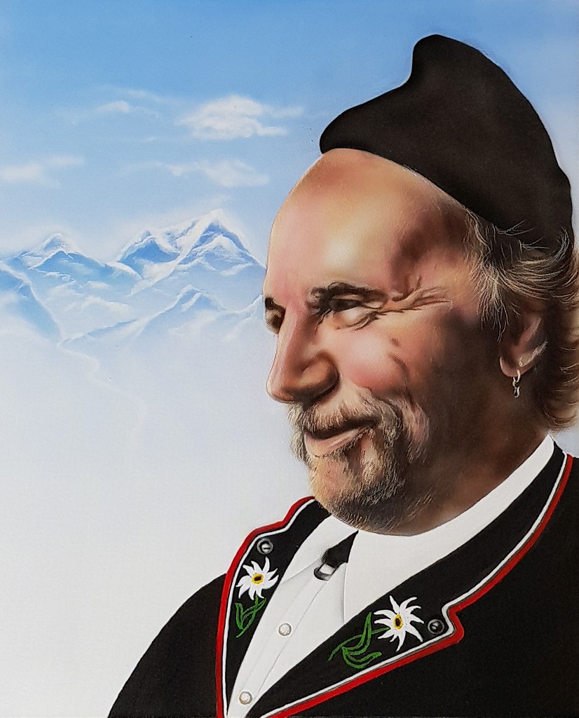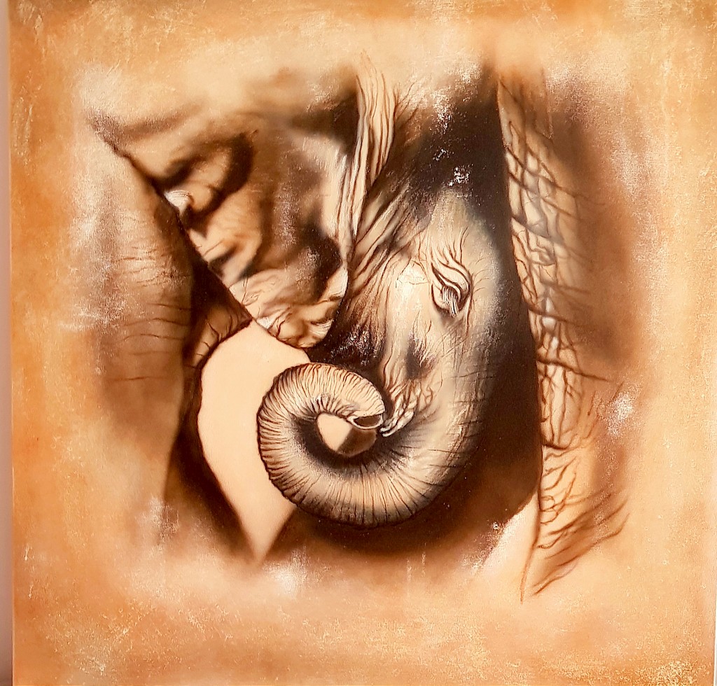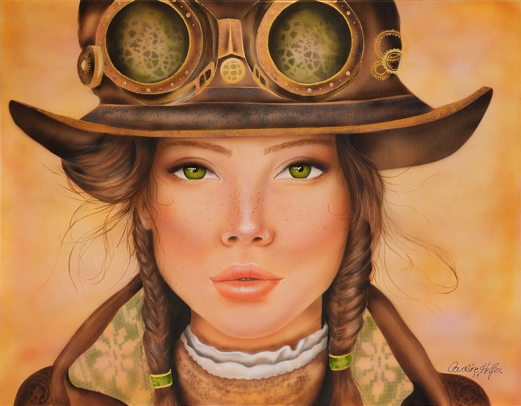 Die Technik des Airbrush ermöglicht einen ganz speziellen Bildstil zu erzielen. In Kombination mit verschiedenen Radier- und Kratztechniken habe ich meinen ganz eigenen Stil gefunden.